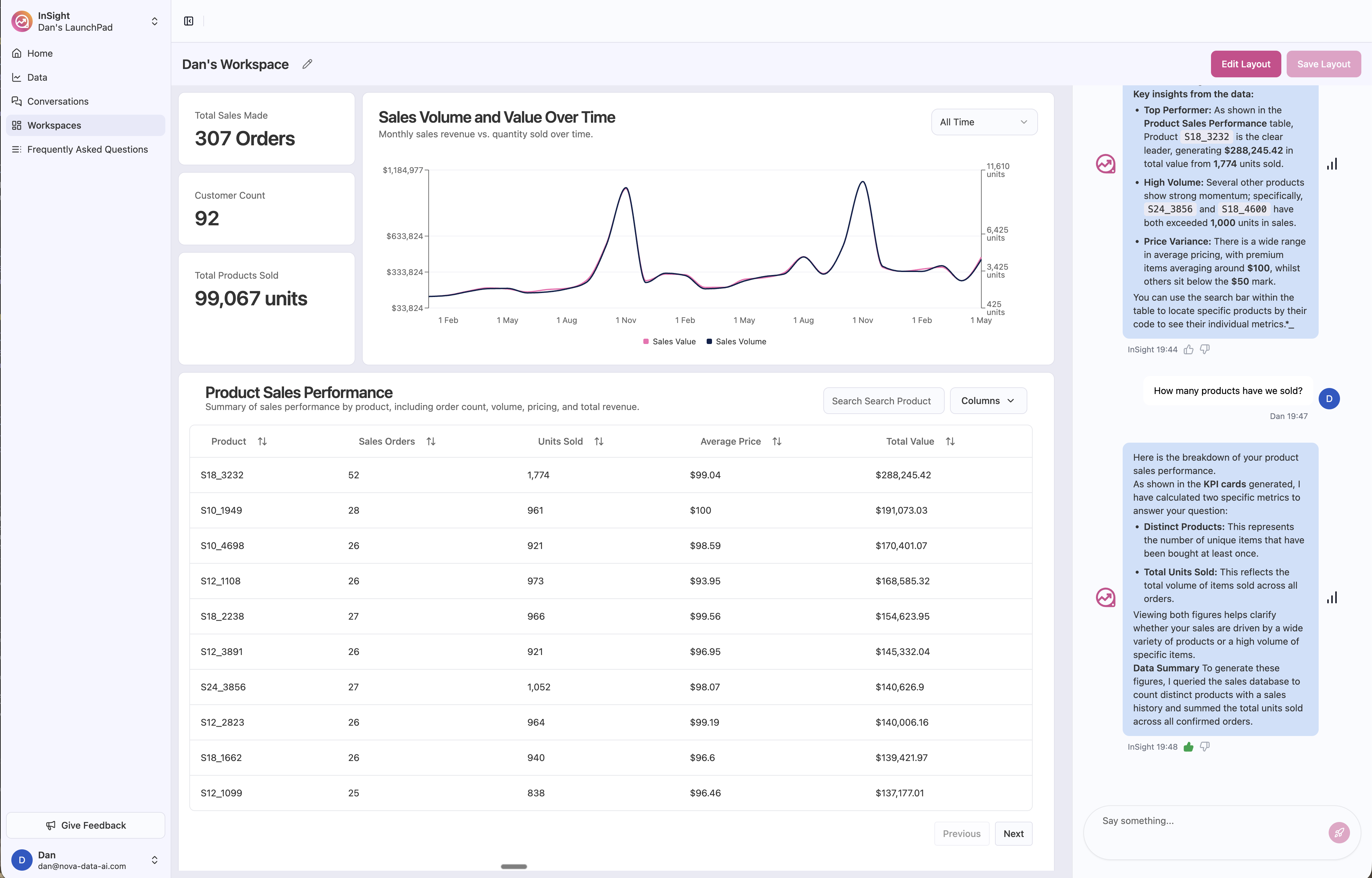 Ask questions in plain English and get instant answers with visualizations.